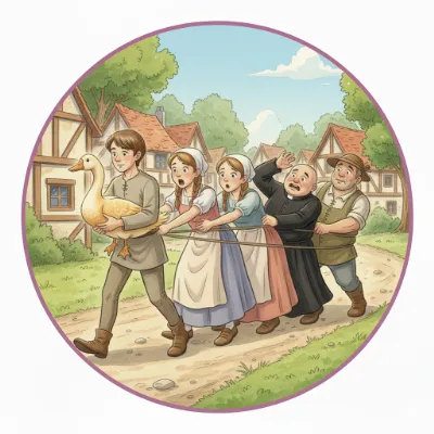 ところが、彼女たちはがちょうにくっついて離れなくなってしまいました!