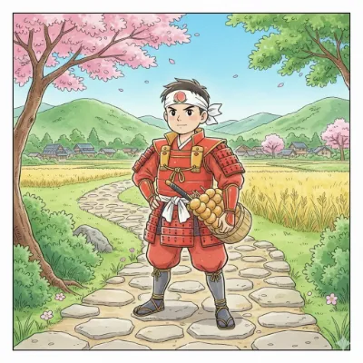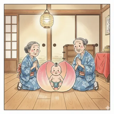 桃の中から男の子が生まれました!「桃太郎」と名付けられました。