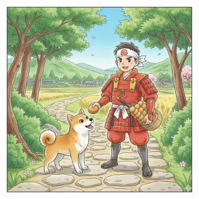 イヌがきびだんごを一つもらい、仲間に加わりました。