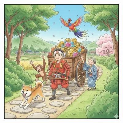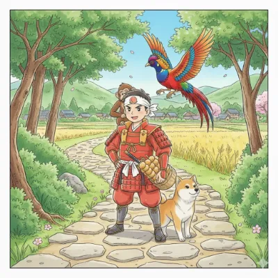 Next, a monkey and a pheasant also became Momotaro's companions.
