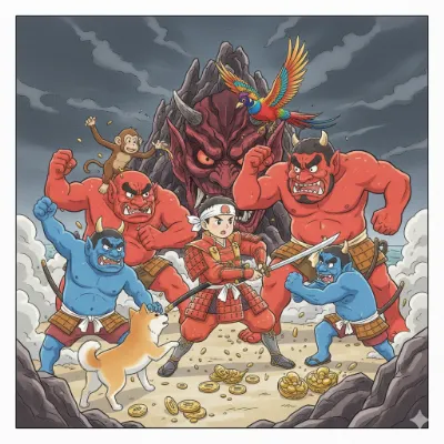 桃太郎たちは勇気を持って戦い、ついに鬼たちをやっつけました。